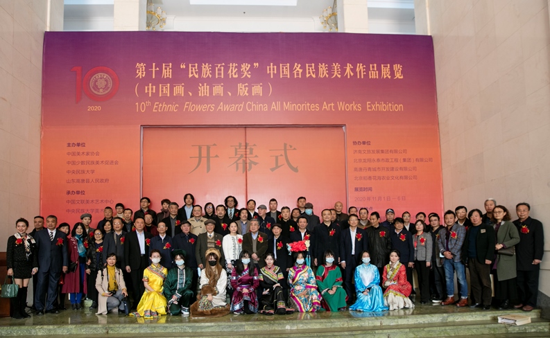 2020年11月1日,由中国美术家协会、中国少数民族美术促进会、中央民族大学、山东省聊城市高唐县人民政府共同主办的第十届“民族百花奖”——中国各民族美术作品展览(中国画、油画、版画),在北京民族文化宫正式开幕!
